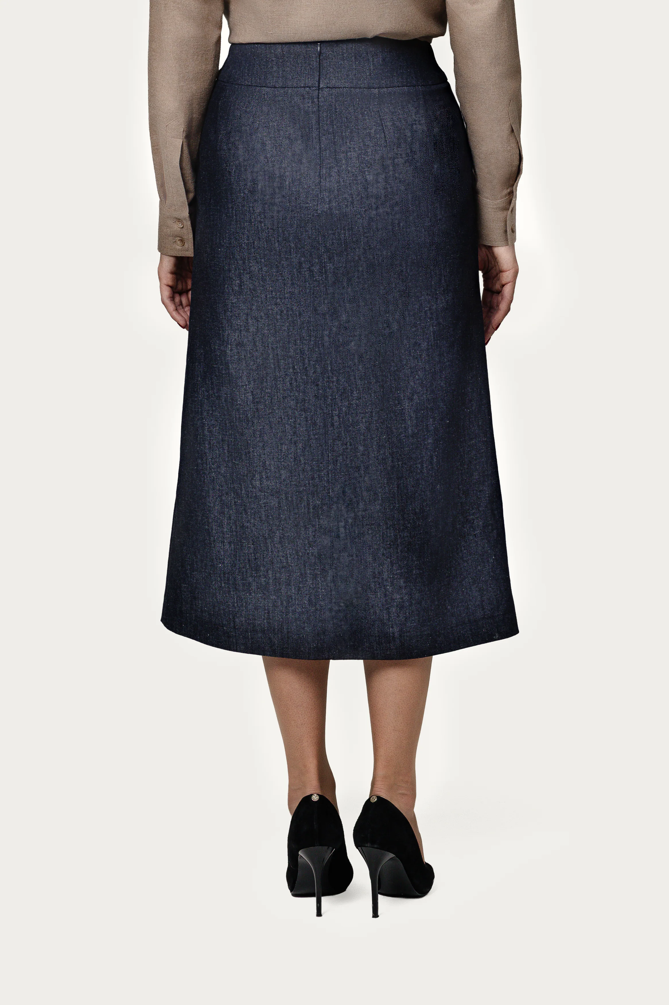 Получить каталогАртикул: Юбка TKK-247 – YB-0009Юбка прямого силуэта в оттенке «джинса» с премиальной отделкой. Разрез добавляет динамики, оттенок — универсальности.Цвет: джинсаСостав: 95% хлопок, 5% эластан -