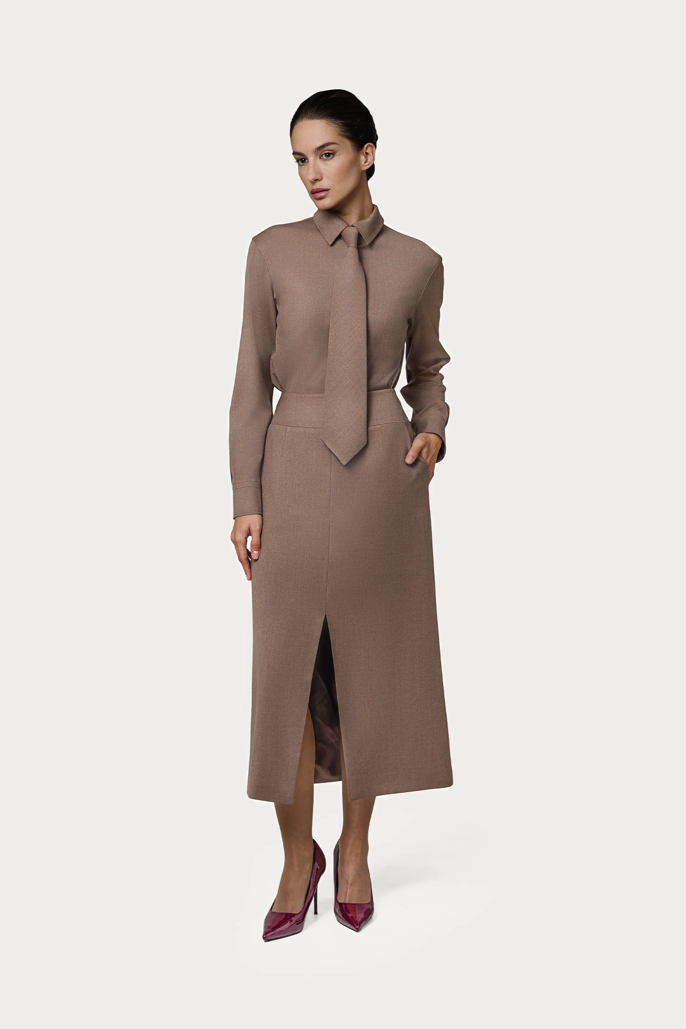 Получить каталогАртикул: Юбка TKK-242 – YB-0008Юбка прямого силуэта в оттенке «бежевая замша» с аккуратным разрезом. Премиальная ткань обеспечивает идеальную посадку и комфорт.Цвет: бежевая замшаСостав: 60% вискоза, 35% ацетат, 5% эластан -